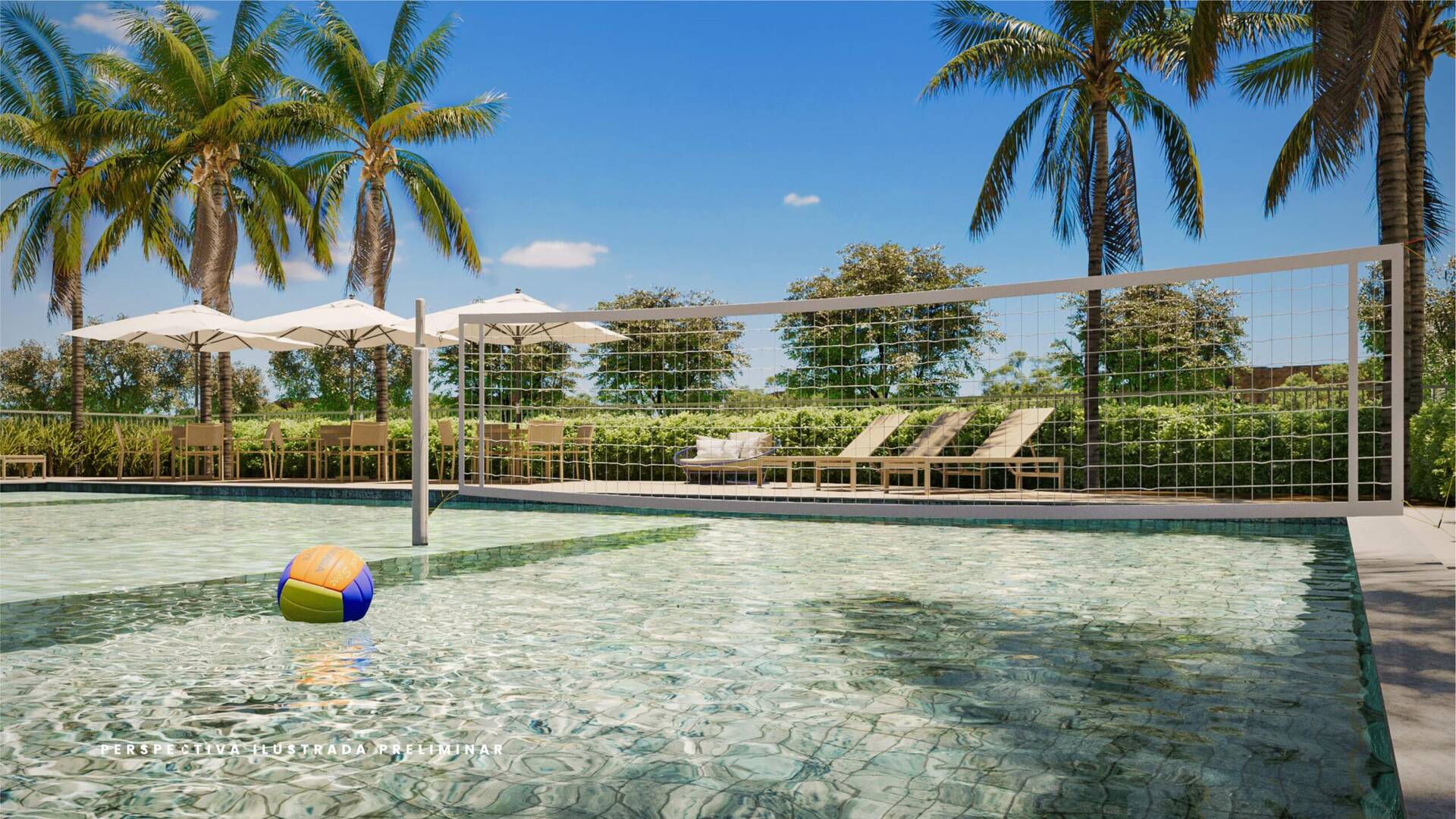 - Áreas comuns externas: piscina, churrasqueira, quadra beach tennis, casa de campo, pet place