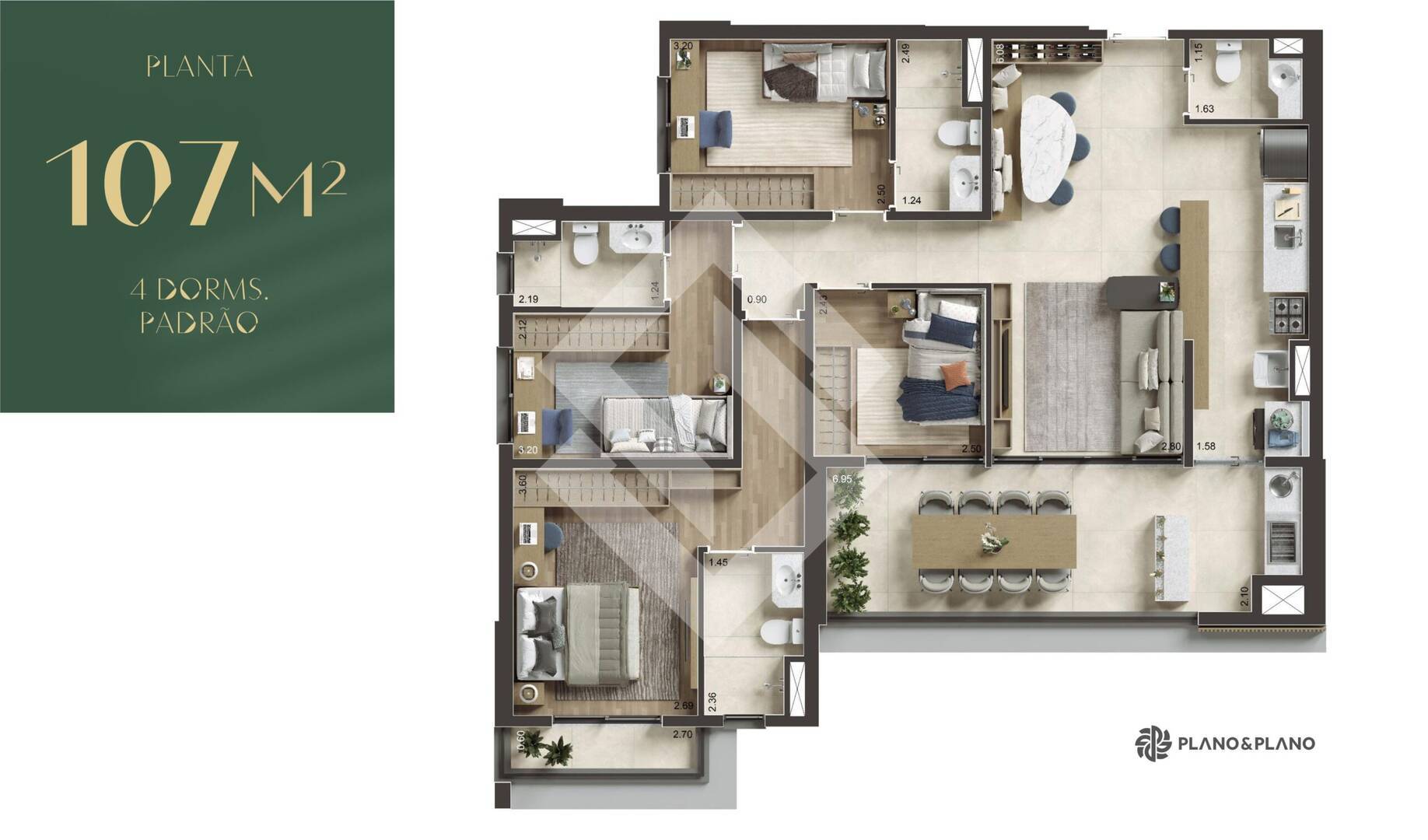 - Áreas comuns internas: coworking, espaço gourmet, salão de festas, brinquedoteca, espaço influencer, fitness, entre outros